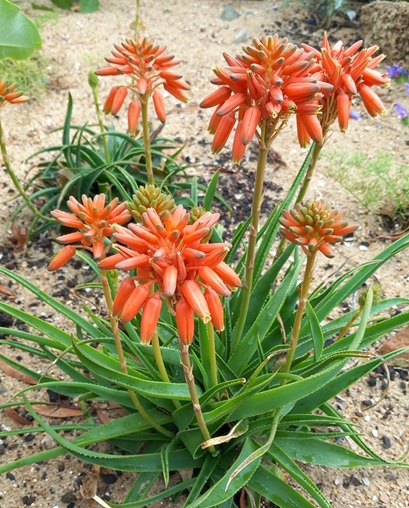 Een rijkbloeiende selectie van een Aloe thompsoniae x Aloe ecklonis hybride.